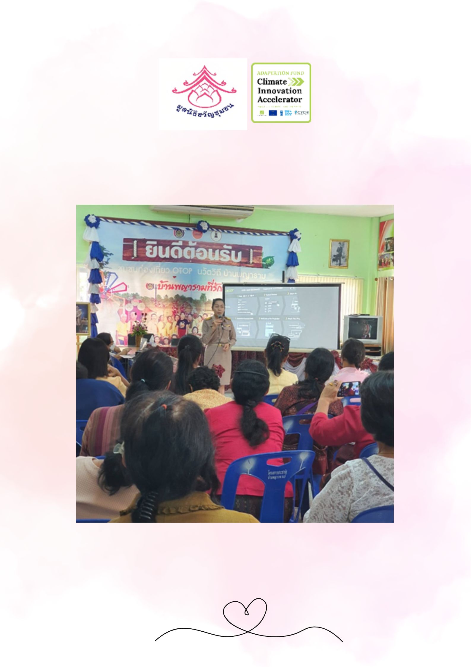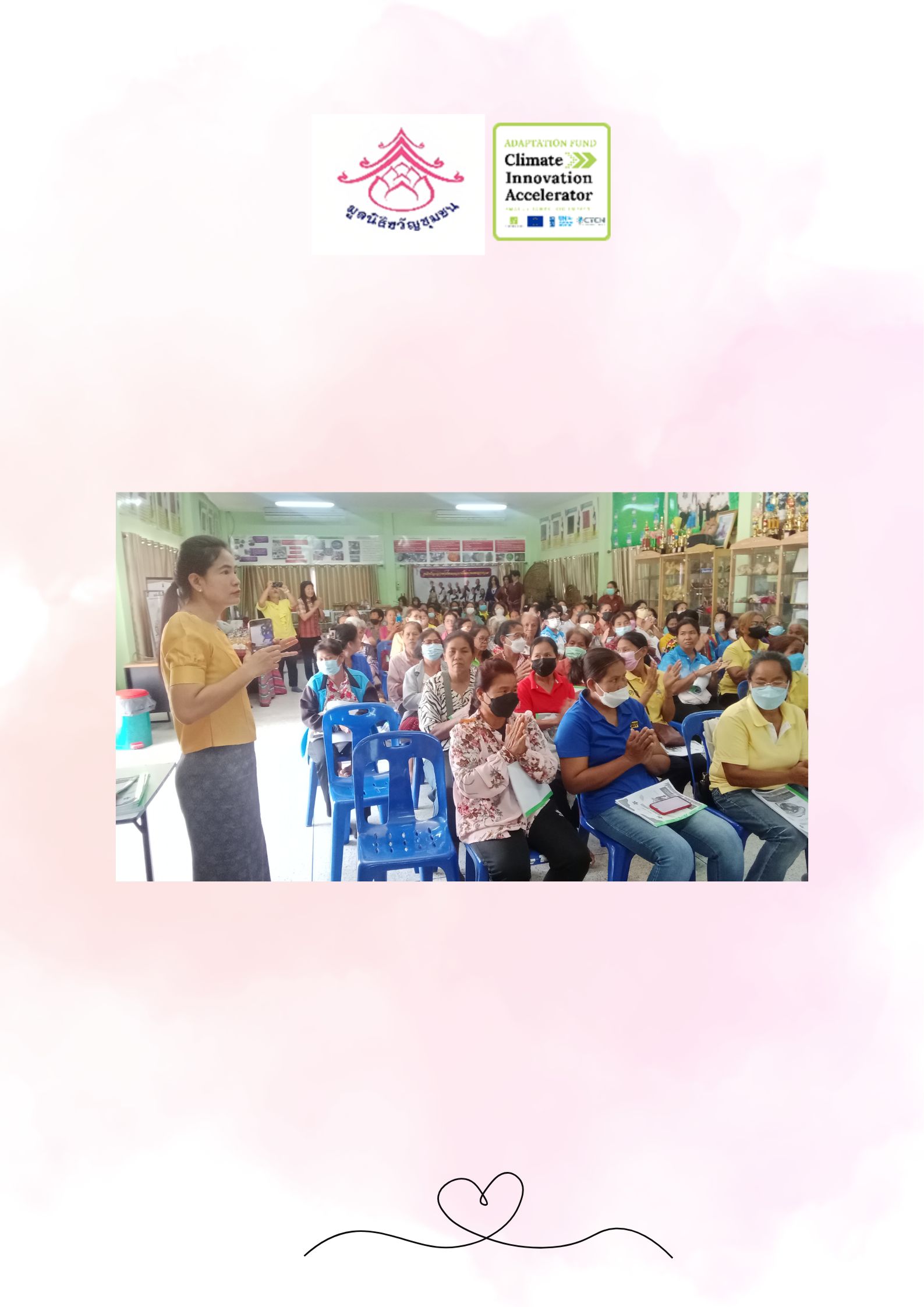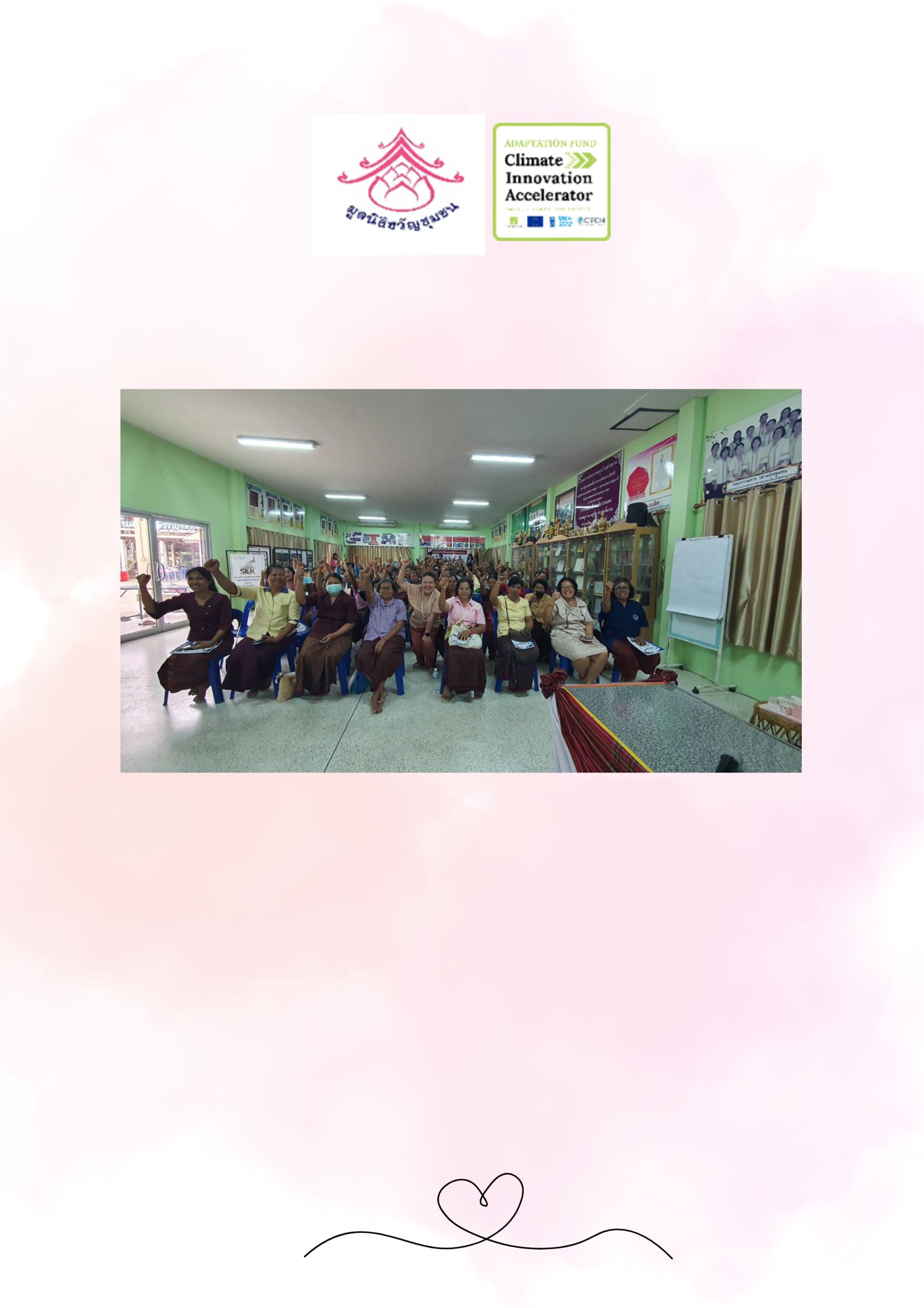 Our target group are women villagers in Phyaram, a traditional mulberry silk cultivating communi ty in Surin. They have been affected by flood and drought. Recentl y, they are forced to live by with zero income. The proposed business model will use local wisdom to maintain the quality of silk floss residues fertilizer, and to introduce weather forecast technologies and the concept of women’s roles in climate change adaptation activities, to assist them to become smart farmers. The women’s roles, in particular, will be promoted, as they play the main part in raising the children, sustaining the families, and keeping the traditions.