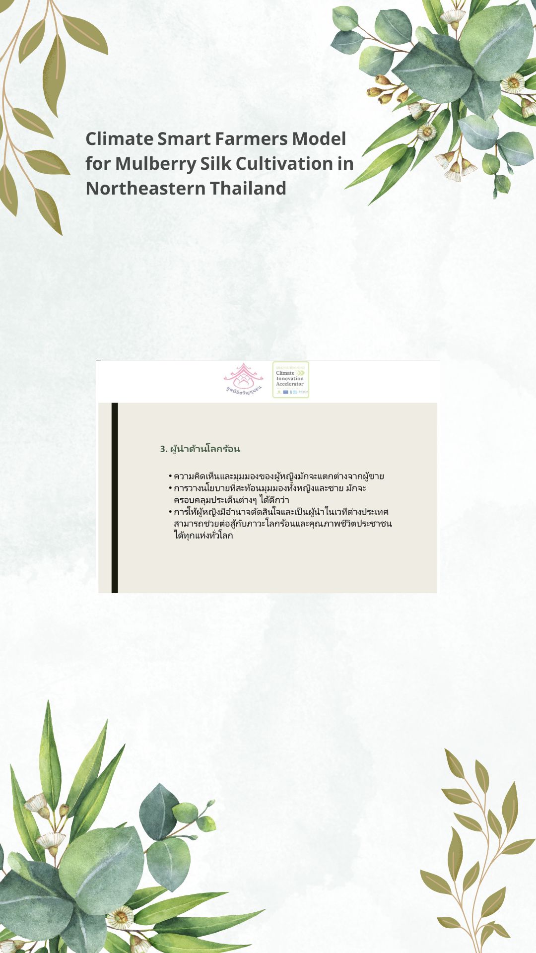 With the following slides, Ms. Orawan Yafa, the