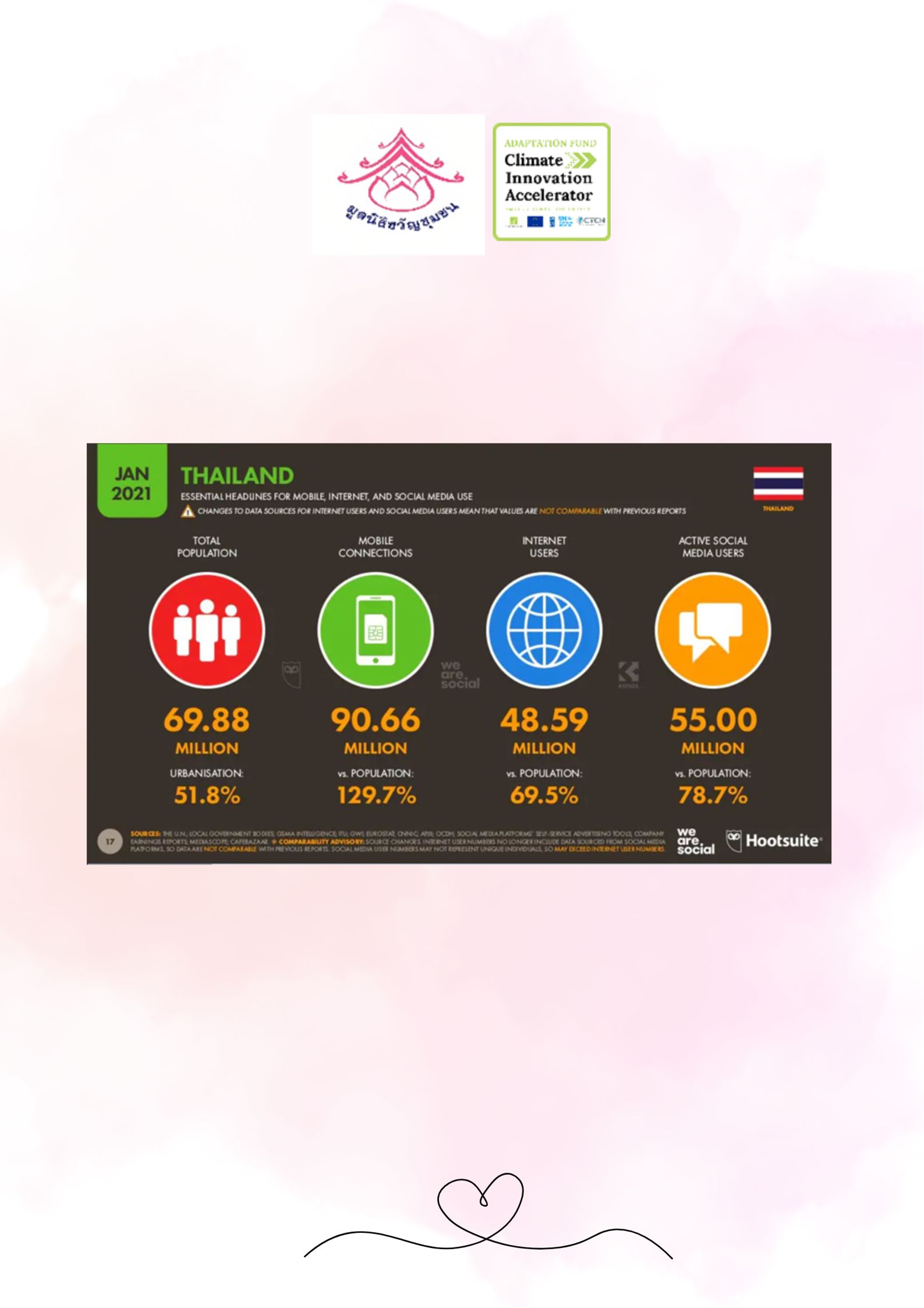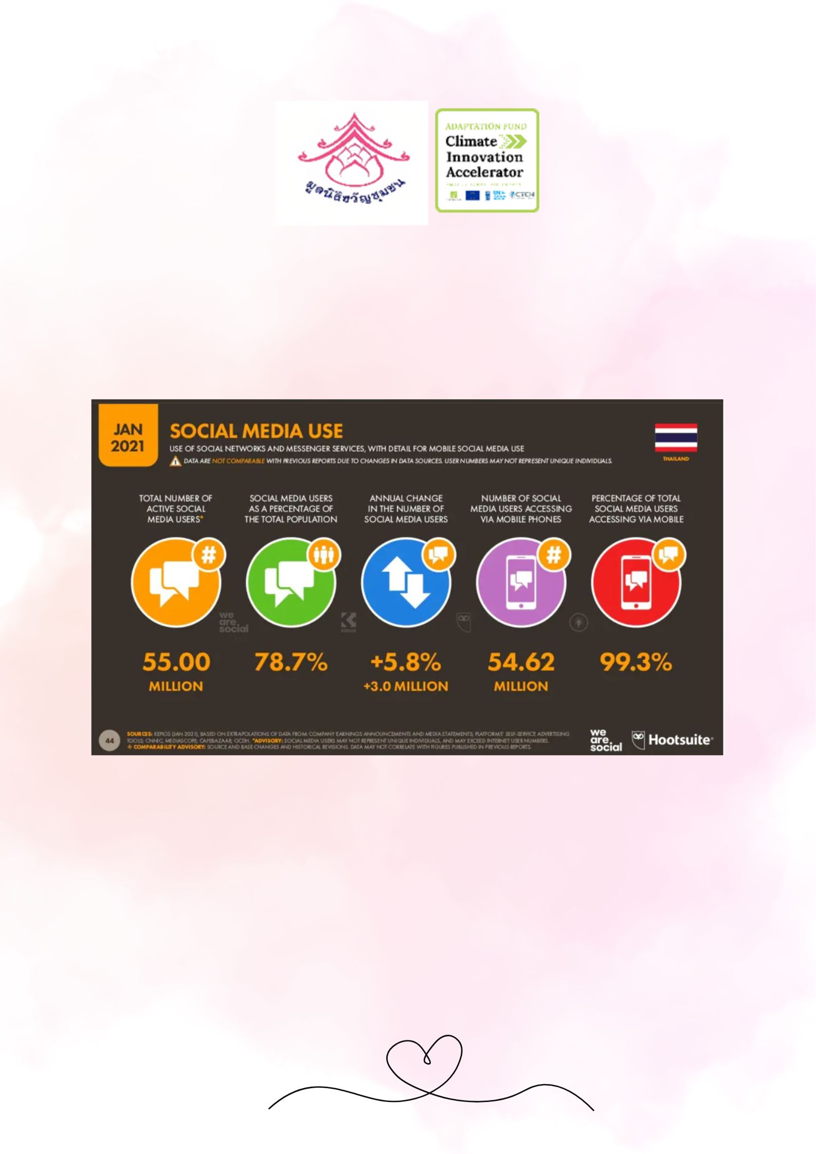 In this regard, Thai social media users are number one in using Facebook, followed by YouTube and Line. Therefore, various communications reaching the target group need to be studied and adjusted in order to make communication more efficient and effective aimed at adapting and changing behavior that leads to personal development and society change as well promoting and sharing of experience on climate change adaptation innovation.